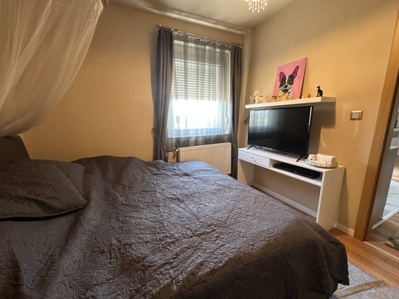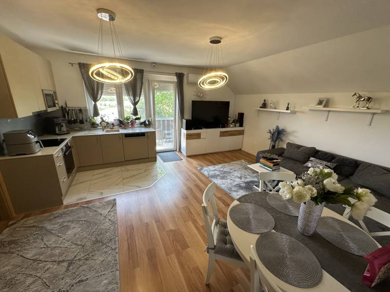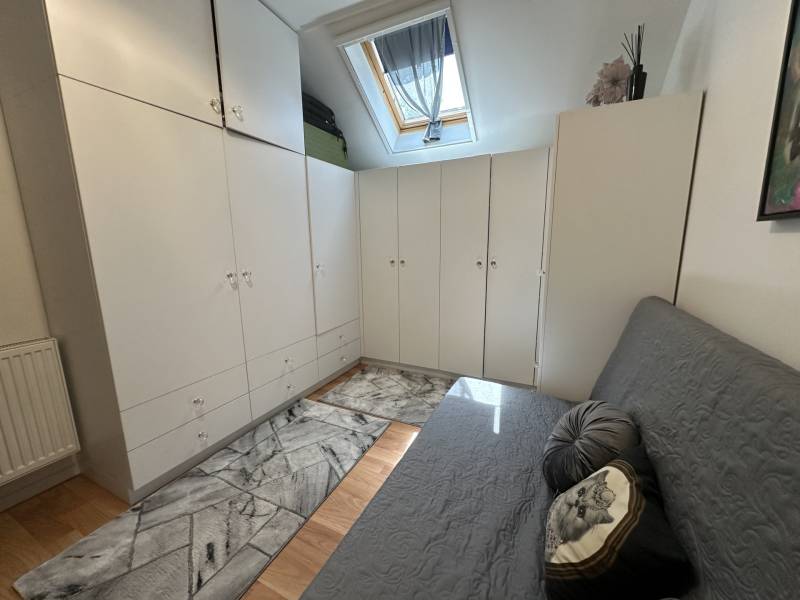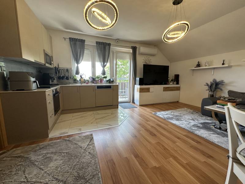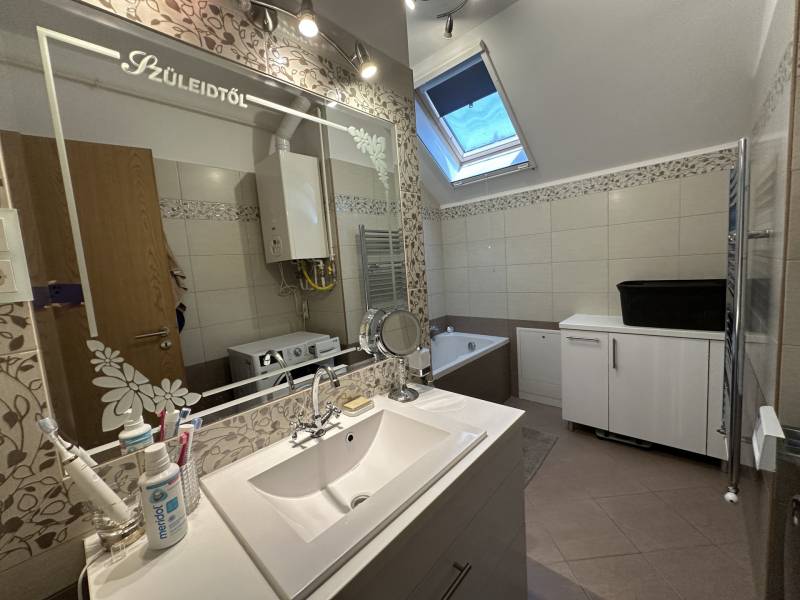 Eladásra kínálunk PILISVÖRÖSVÁR központi részén egy 2012-BEN ÉPÜLT , két szoba, nappali-konyha, fürdőszoba DÉLI fekvésű társasházi lakást, ERKÉLLYEL .- Társasházi lakás nettó 59,29 nm/ bruttó 63nm - újszerű, belső felújítást nem igénylő- 2012-ben ráépítéssel épült a társasházra ez a szint.- 2. emeleti lakás- zárt lépcsőház- 3 szoba ( két háló szoba és egy nappali) - amerikai konyhás nappali, egyedi tervezésű konyhabútorral készült- terasz ( erkély) 6,3 nm - nappali Déli fekvésű- klíma 2024-ben lett beszerelve a lakásba- összközműves -A lakásban gázcirkóval üzemeltetett radiátoros fűtés lett kiépítve, melynek csövei az aljzatban vannak elvezetve. - A burkolat laminált lap és csempe burkolat. - Minden helyiség világos, műanyag ablakok lettek beszerelve. - a fürdőszobába és a kisebbik szobában tetőtéri ablak, lett kialakítva, hővédő rolóval- beépített bútorok, műszaki berendezések a lakás tartozékai - kamerarendszer kiépítve- riasztórendszer beszerelve- villany és gáz óra a lépcsőházban- közös költség 18 000 Ft- társasházi kert nagy fákkal,- jó lakóközösség- takarítást az ott lakók osztják fel egymás közöttTömegközlekedés, bevásárlási lehetőség alig néhány percre.Hívjon és megmutatom, szeressen bele!!