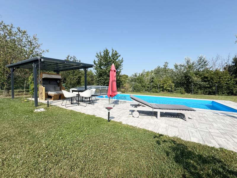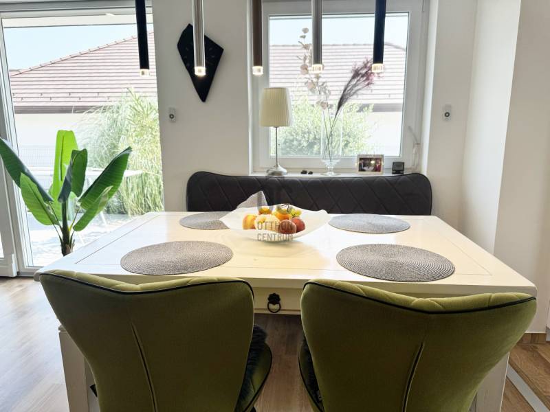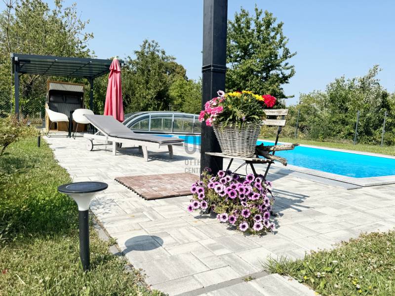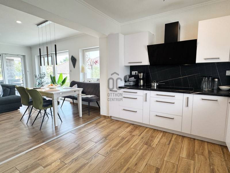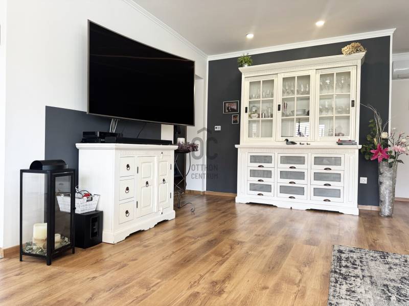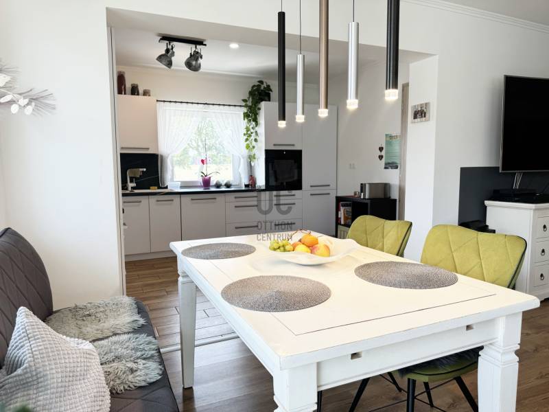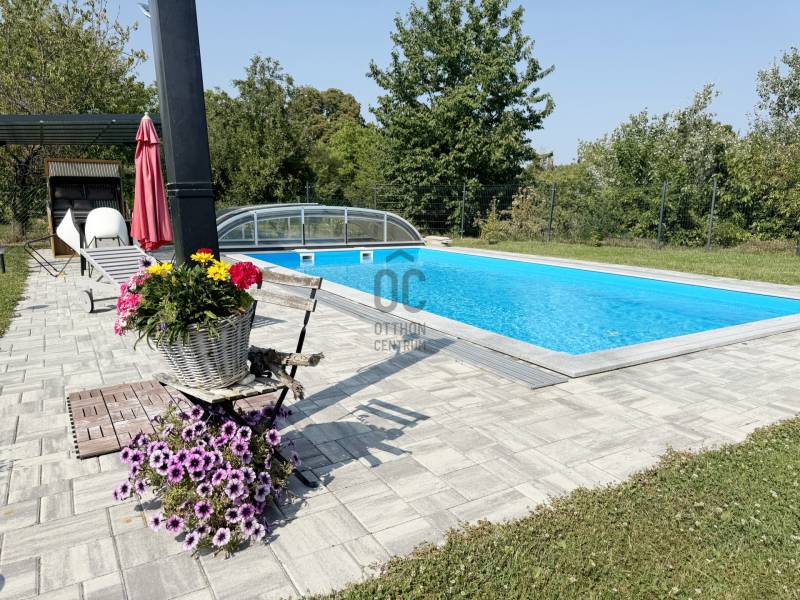 AZ OTTHON CENTRUM KIEMELT KÍNÁLATÁBAN!Engedje, hogy beleszeressen ebbe a különleges, 2022-ben épült, letisztult eleganciát sugárzó otthonba, amely a nyugalmat, a korszerű technológiát és a luxus kényelmét ötvözi.Ez a 150 m²-es földszintes családi ház egy 1188 m²-es, parkosított telken helyezkedik el, és nemcsak a funkcionalitásával, hanem egyedi hangulatával is kitűnik a kínálatból. A ház hátsó udvarából szolid balatoni panoráma nyílik, ami tovább fokozza a természetközeli élményt.Automata öntözőrendszer és különleges kerti részletek tesznek igazán különlegessé. Az otthon ideális választás családoknak, természetkedvelőknek, mint otthonként mint nyaralóként jól funkciónál.Az ingatlan kiváló energetikai és műszaki adottságokkal bír.✅ Műszaki jellemzők, amelyek garantálják a gondtalan mindennapokat:-Földszintes elrendezés, ideális minden életkor számára-Telek mérete: 1188 m²-Lakótér: 150 m²-Garázs: 24 m²-Fűtés :BOSCH elektromos kazán padlófűtéssel, + kandalló a nappaliban a meghitt estékért-Melegvízellátás: 200 literes elektromos bojler-5 kW-os napelem rendszer – rendkívül alacsony fenntartási költségek-Energiaellátás :3 fázis (3 x 16 A)-Tégla falazat + 20 cm-es külső szigetelés-Tetőfedés :Creaton betoncserép tető-Nyílászárók : 3 rétegű műanyag szerkezetű nyílászárók elektromos redőnyökkel és szúnyoghálókkal-Esővíz hasznosítás: 2 db hűtő-fűtő klíma-Biztonság : 4 kamerás megfigyelőrendszer -Elektromos kapunyitó-Esővíz hasznosítás :10 m³-es esővízgyűjtő tartály és automata öntözőrendszerWellness-élmény otthon:A gondozott kert központi éke a sós vizű, 6x4 méteres medence, amely nemcsak nyáron nyújt felfrissülést, hanem egy stílusos életteret is teremt.Belső elrendezés:Tágas, napfényes nappali amerikai konyhával és étkezővel, több hálószoba, külön dolgozószoba, nagyméretű fürdőszoba zuhanyzóval és káddal – minden részletében átgondolt, élhető kialakítás.⸻Ez az ingatlan ideális választás lehet:•Azoknak, akik időtálló, energiatakarékos , minőségi otthonra vágynak a Balaton közelségében,•Családoknak, akik egy harmonikus ,biztonságos életteret keresnek,•Befektetőknek, akik prémium kategóriás kiadható nyaralót vagy állandó bérleményt keresnekEz az ingatlan nem csupán egy ház – ez egy új életminőség záloga, ahol a természet, a nyugalom és a modern technológia kéz a kézben jár.Legyen szó állandó otthonról, nyaralóról vagy befektetési céllal történő vásárlásról, ez a cserszegtomaji gyöngyszem a legjobb választás.AMENNYIBEN FELKELTETTEM ÉRDEKLŐDÉSÉT , FORDULJON HOZZÁM BIZALOMMAL , VÁROM HÍVÁSÁT AZ ORSZÁG LEGNAGYOBB ÉS LEGELISMERTEBB INGATLANKÖZVETÍTŐ HÁLÓZATA NEVÉBEN!